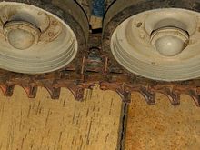 Guide teeth hitting return roller “axle” causing grinding sound. The guide teeth are hit all the return roller as shown here.
