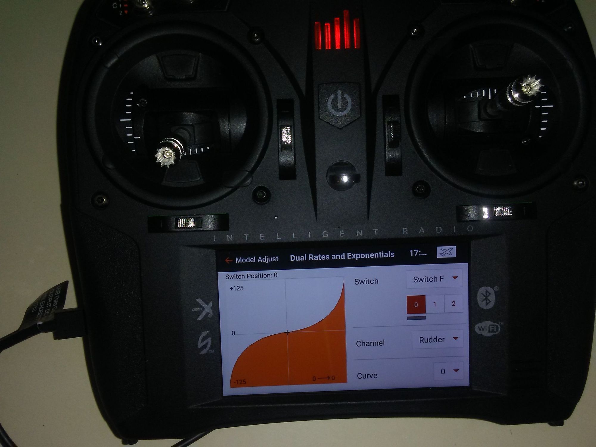 Low rates have a lot of expo for tight stall turns and knife edge looping maneuvers yet gentle around neutral to avoid over inputs during rolling maneuvers