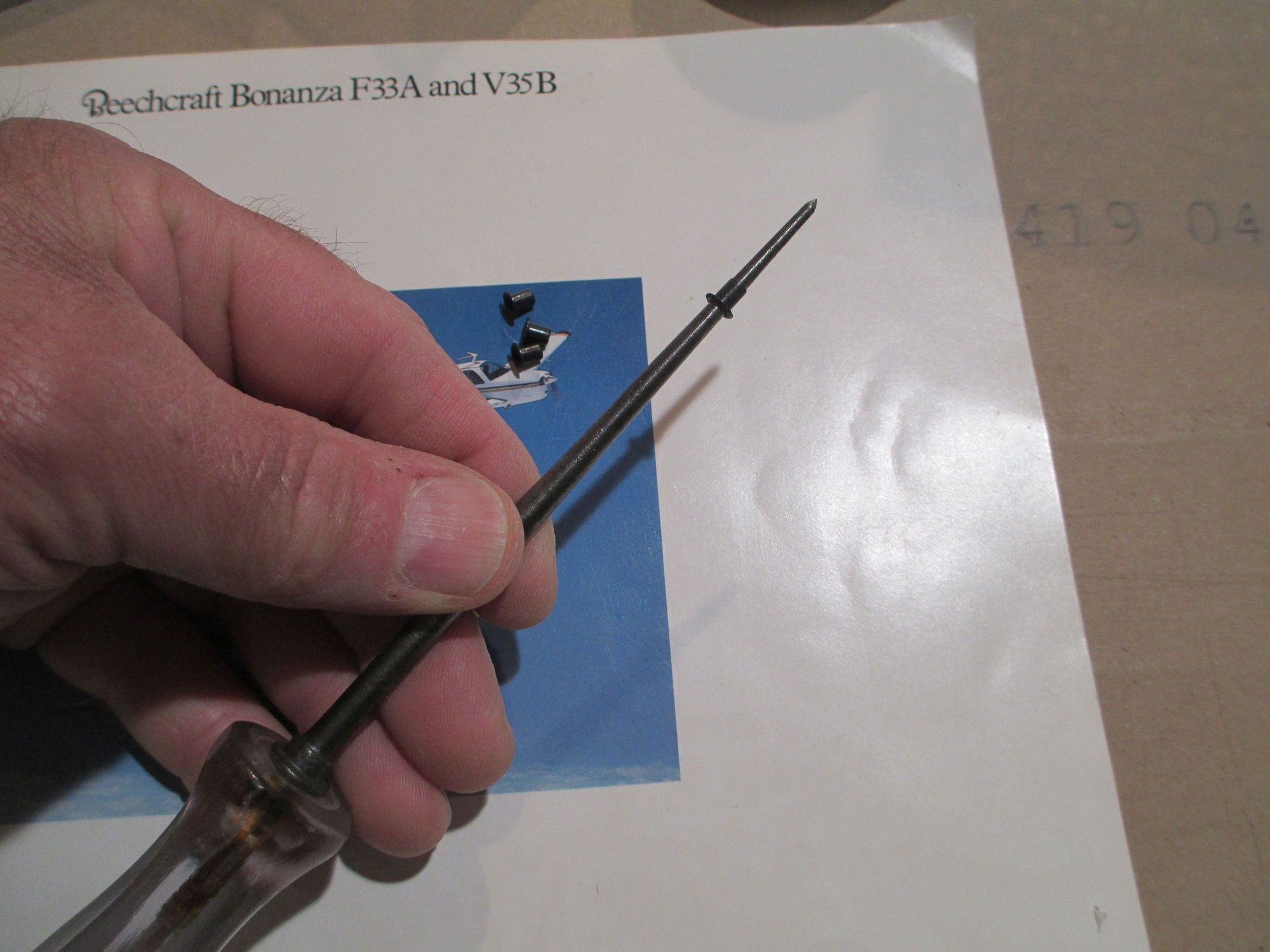 Simply slip the eyelet over the pointy end of an awl and...