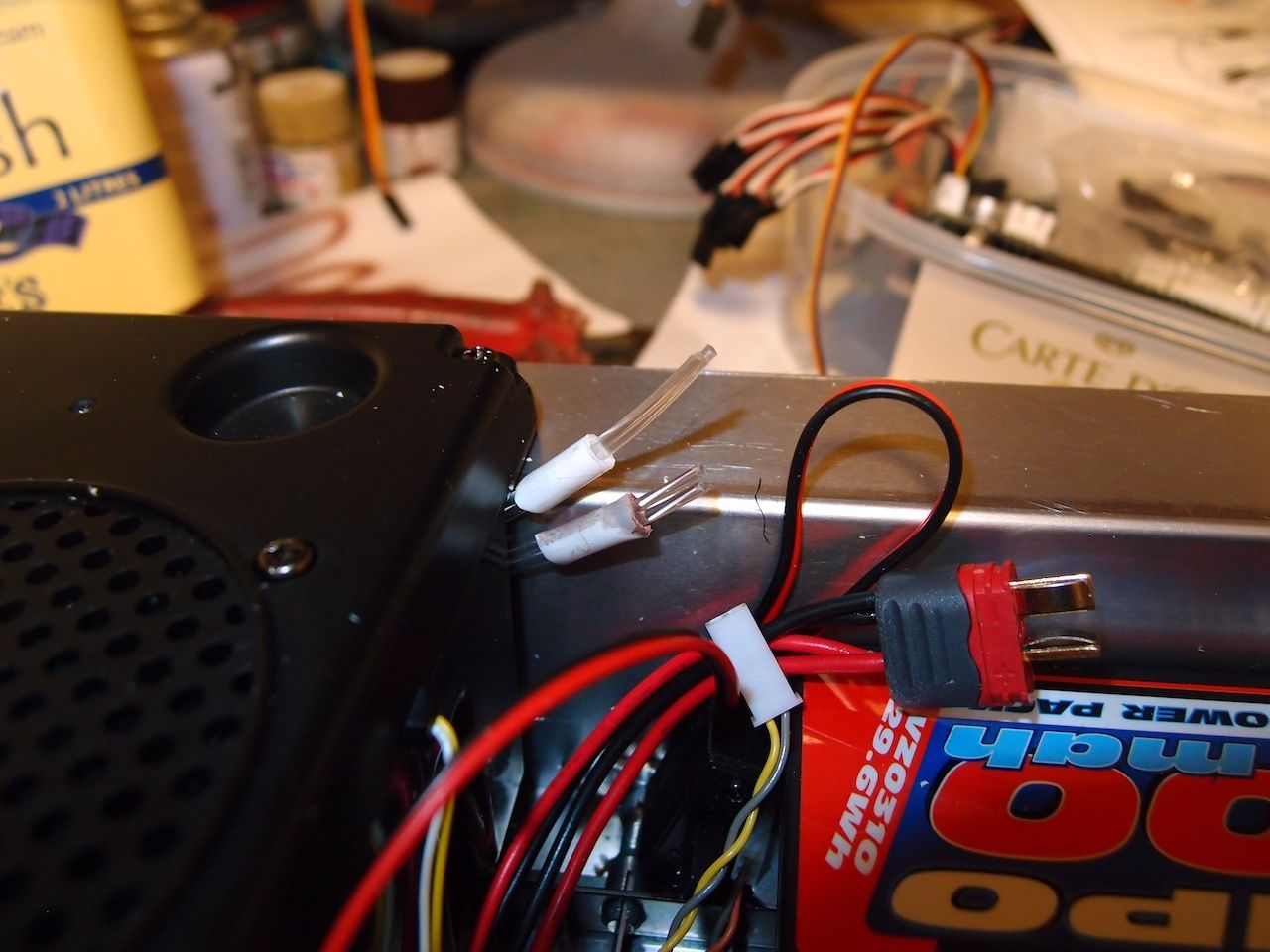 The 4 fibre optic cables ,when cut an leds will fit in the tubes.
