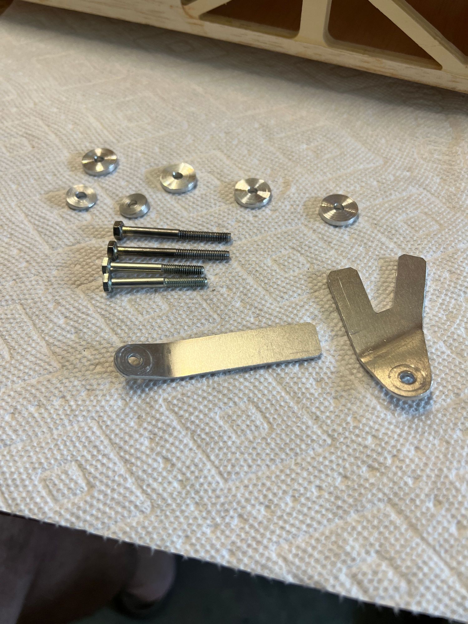Standoff washers on top then two wedge washers for the front because the side of the fuselage is not 90 degrees to the bold axis the you see the long bolts I made and the stock ones
