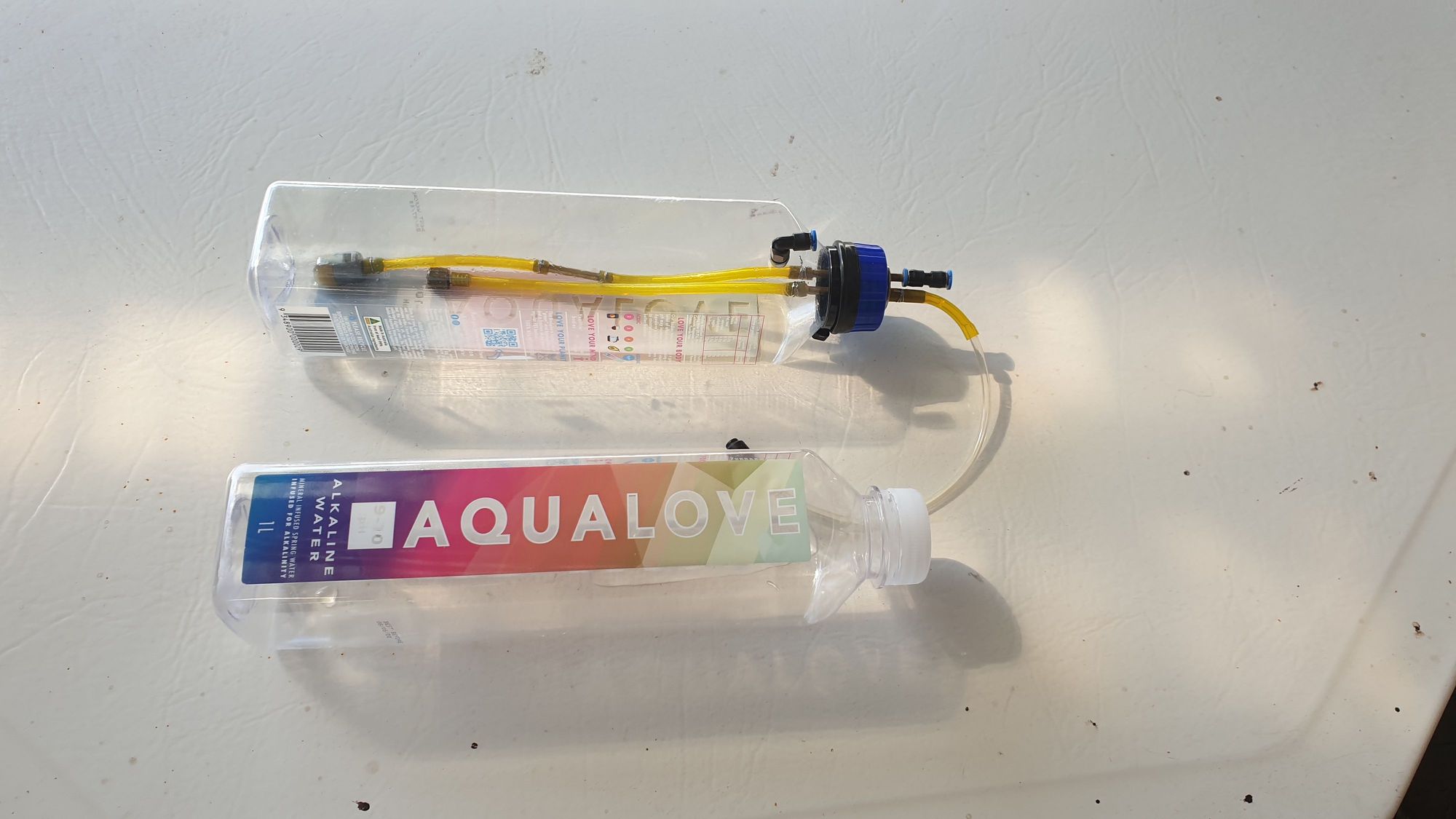 One litre water bottle and felt clunk.