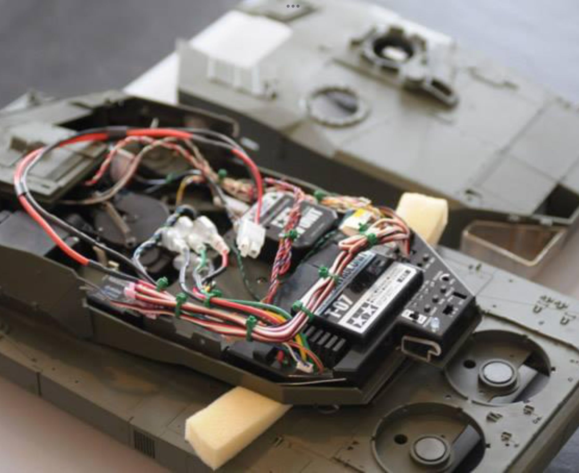 The battery placed in the turret per Tamiya Instructions will warp it over time; result, turret sags and rubs on the tank deck. Also, no more messing with turret wires during battery swaps.