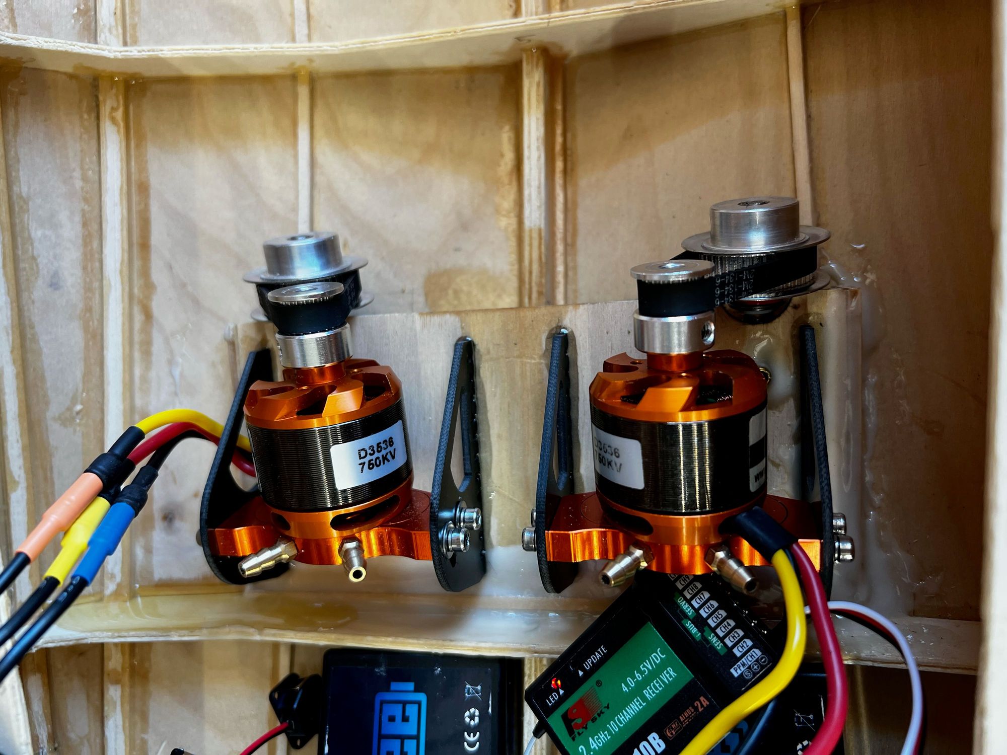 Motors mounts are epoxied in place and the motors are spinning! Time to mount the Kort Nozzles Next.