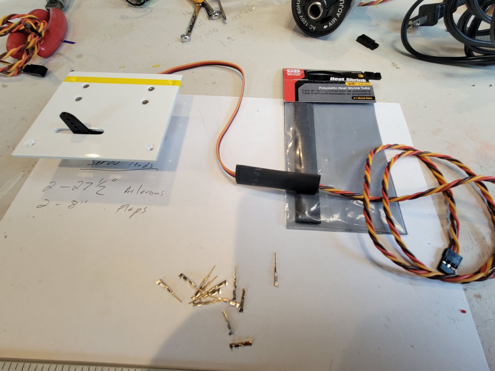 To ensure that the servo connection doesn't get disconnected I slip over the connection point a length of heat shrink tubing.