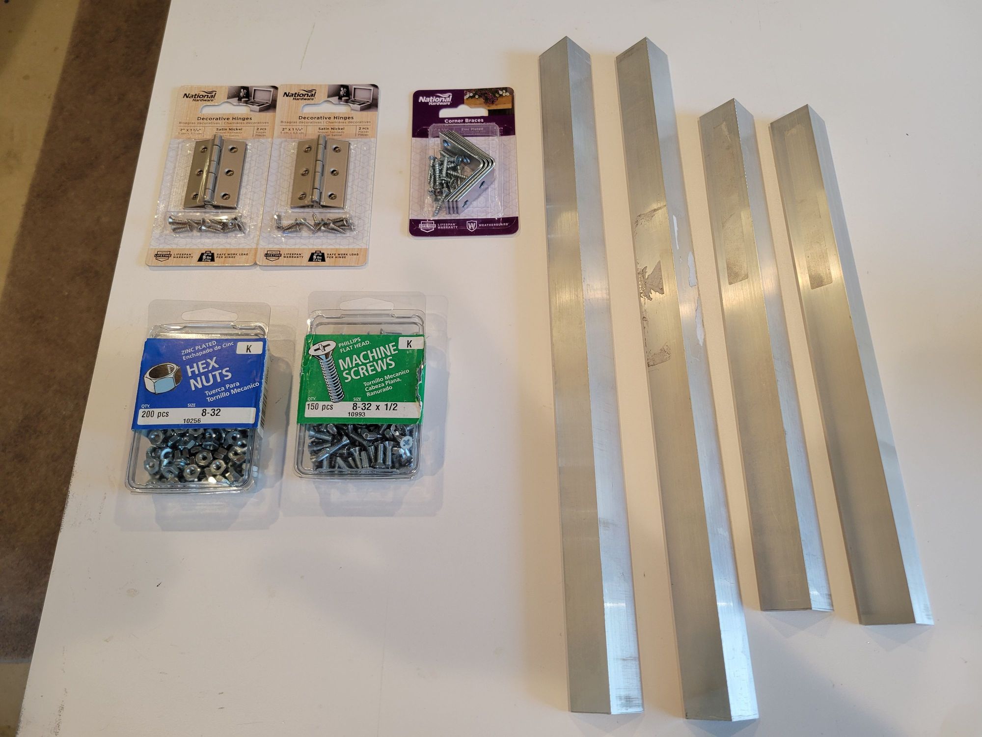 Materials to make the frame. I opted to use 1"x1/8" aluminum angle stock.