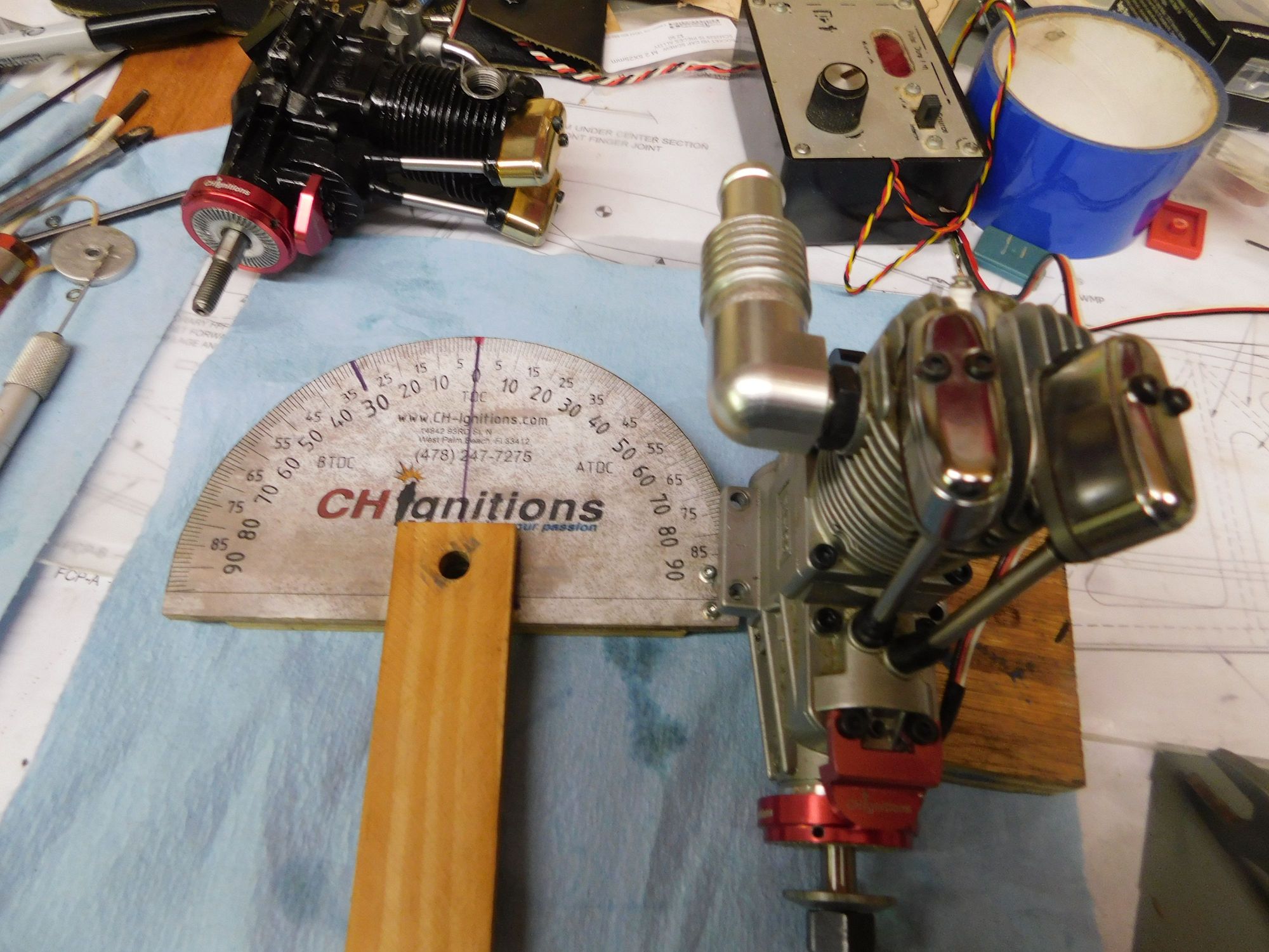 Here you go Jim, a 100 with a TurboHeader mounted without adapter and my probably over built degree wheel, it has a 4 oz lead weight on the back and carefully balanced wit the small screws on the right. I balanced it on a crankshaft with no rod or piston on it.